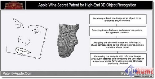 蘋(píng)果的這項專(zhuān)利將能通過(guò)采用自動(dòng)生物識別方法,分析2D圖形的曲線(xiàn)、點(diǎn)、輪廓,并將這些數據編譯成3D物體,之后就能識別或辨別包括臉部在內的任何三維物體物體。