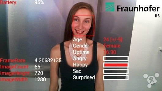 自谷歌眼鏡這個(gè)概念誕生起,面部識別就是一個(gè)備受討論的課題,德國弗朗霍夫研究所的科學(xué)家們就為它開(kāi)發(fā)了一款應用,號稱(chēng)能夠看穿人們的心情。