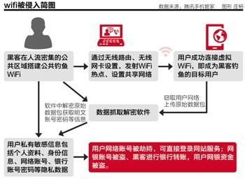 騰訊手機管家安全專(zhuān)家陸兆華接受21世紀經(jīng)濟報道記者采訪(fǎng)時(shí)表示,黑客會(huì )以不同的技術(shù)通過(guò)WiFi網(wǎng)絡(luò )給用戶(hù)造成安全問(wèn)題,比如中間人攻擊、 DNS劫持和釣魚(yú)網(wǎng)頁(yè),竊取用戶(hù)的各種賬號密碼以及文檔(如圖)。